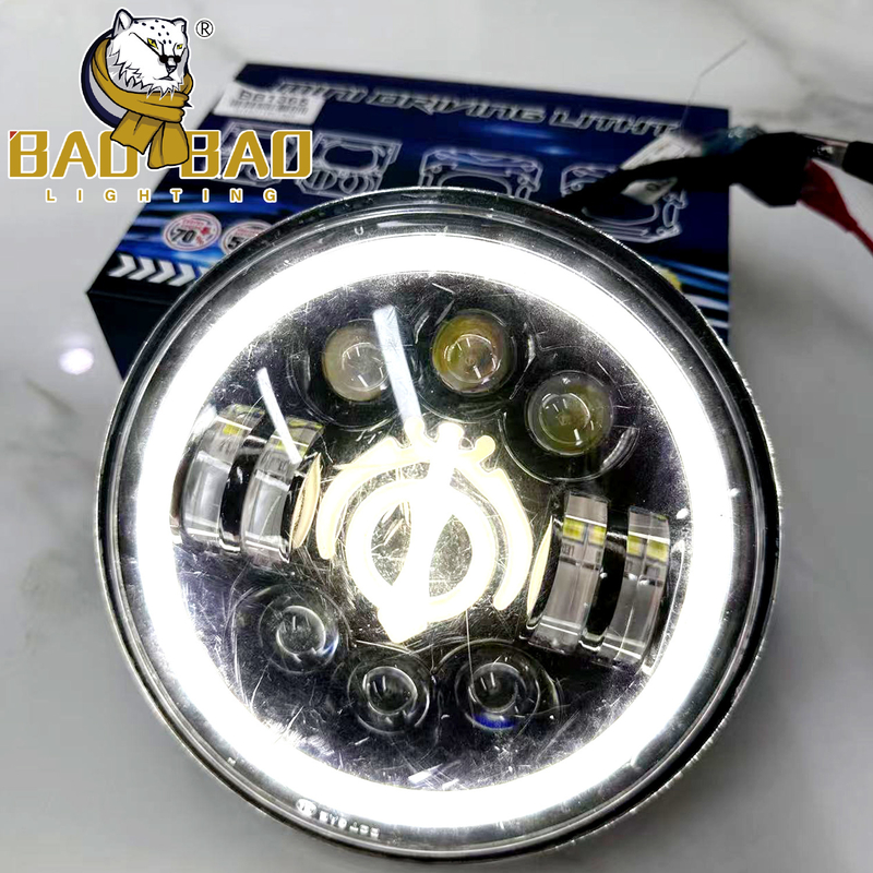 7 inci lampu depan sepeda motor putih kuning LED aluminium 12V tahan air IP67 IP68